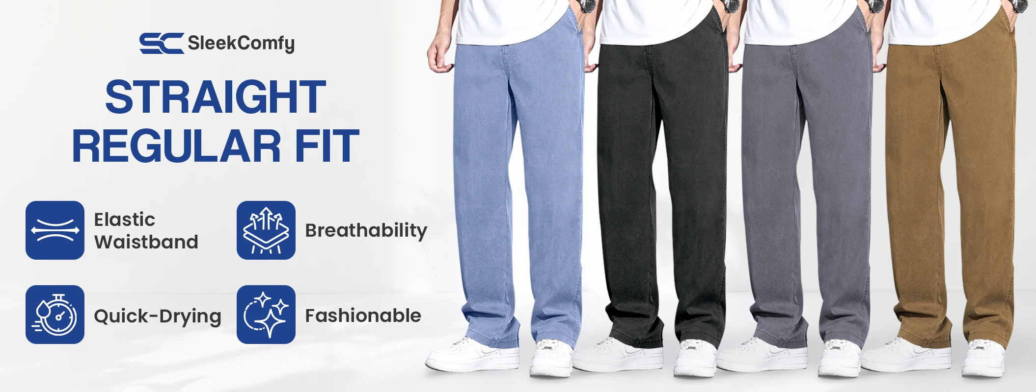 SleekComfy - All Day Comfort Straight Regular Fit Denim Trousers
